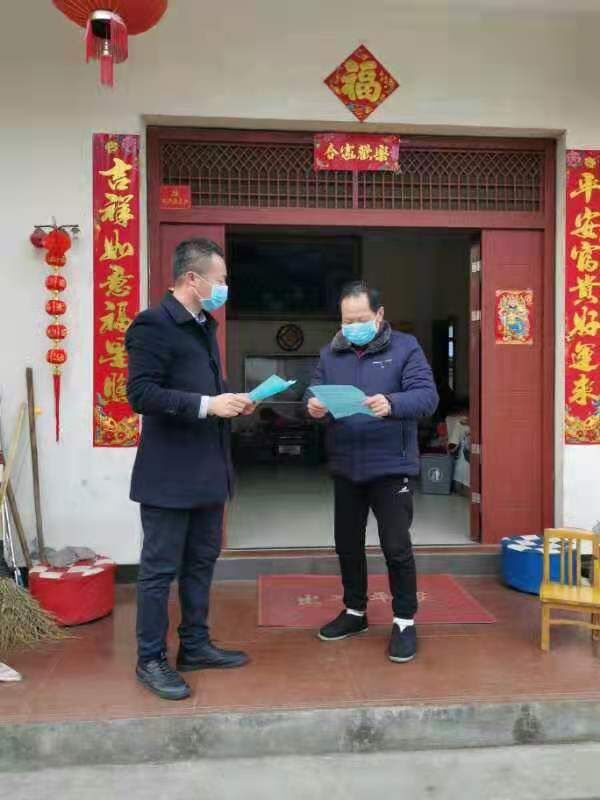 疫情防控戰役全面打響後,全縣口罩等抗擊疫情所需物資嚴重緊缺。面對疫情防控的嚴峻形勢,陳霞鄉流動黨支部書記胡財保與本村黨員餘劍峰緊急外出尋求緊缺物資供貨管道,經多方聯絡打聽,終於在浙江湖州預定到口罩2萬只、消毒液2千斤,他們馬不停蹄的驅車300多公里來回奔波將物資送到一線“戰場”,來不及休息片刻,他的身影又出現在村口值勤點上。正如他自己所說“哪里有困難,哪里就有黨員的身影”!