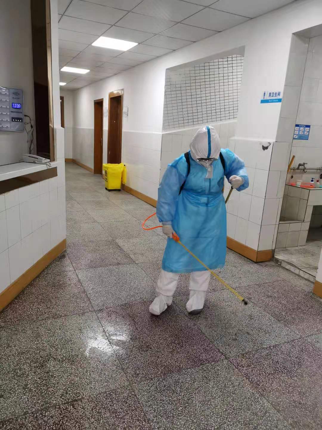 陳樹梅對院內進行消毒