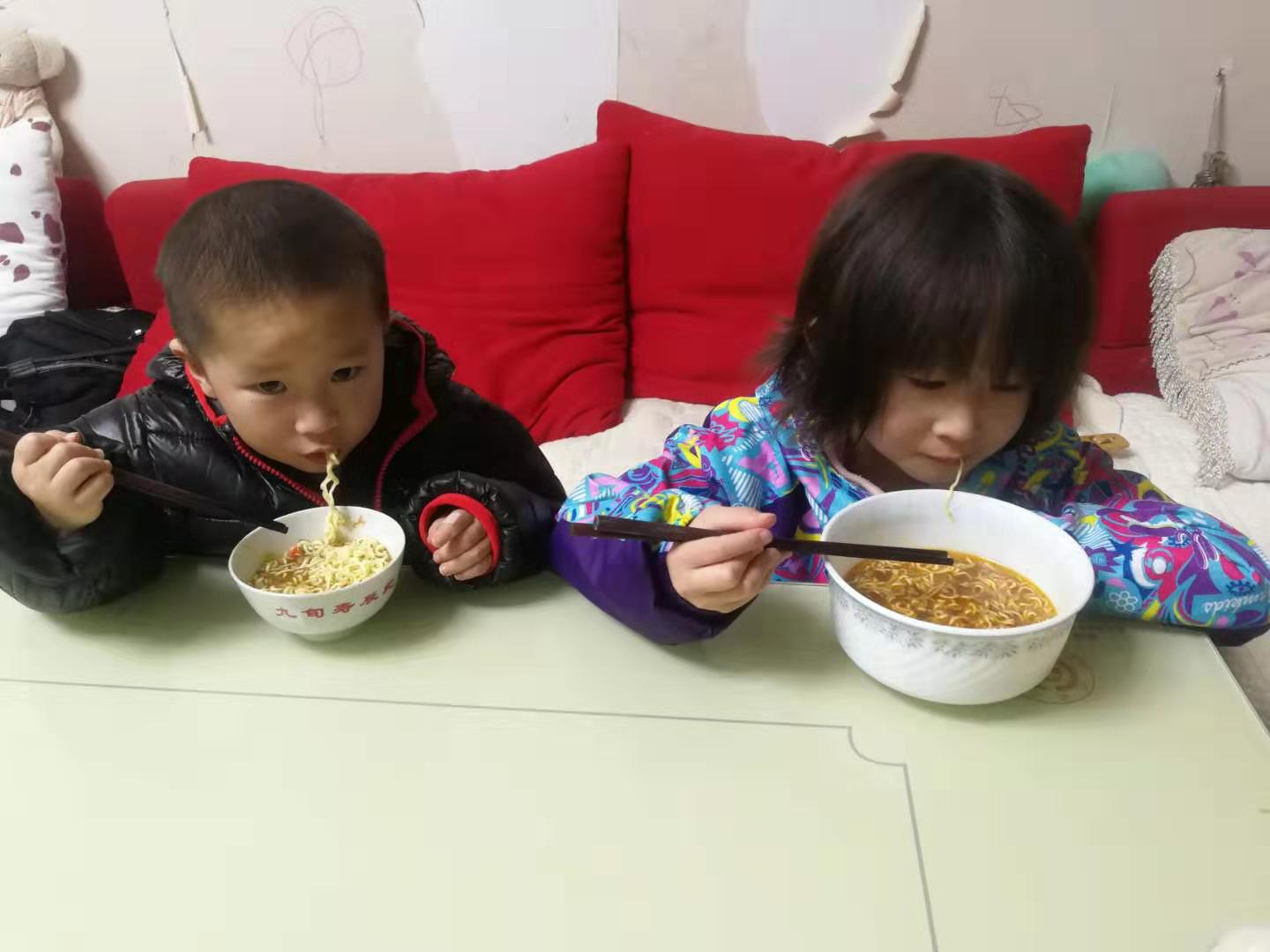 姐弟煮即食麵吃