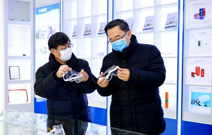 貴州千葉藥品包裝公司2月1日提前復工,轉產疫情防控急需物資護目鏡。當天,孫志剛一行走進產品展示中心,一邊看產品,一邊詳細詢問研發、生產能力等情況,對企業主動擔當開發新產品、為疫情防控作貢獻表示肯定,叮囑企業進一步加強自我防護,保障好員工健康,千方百計穩定生產。