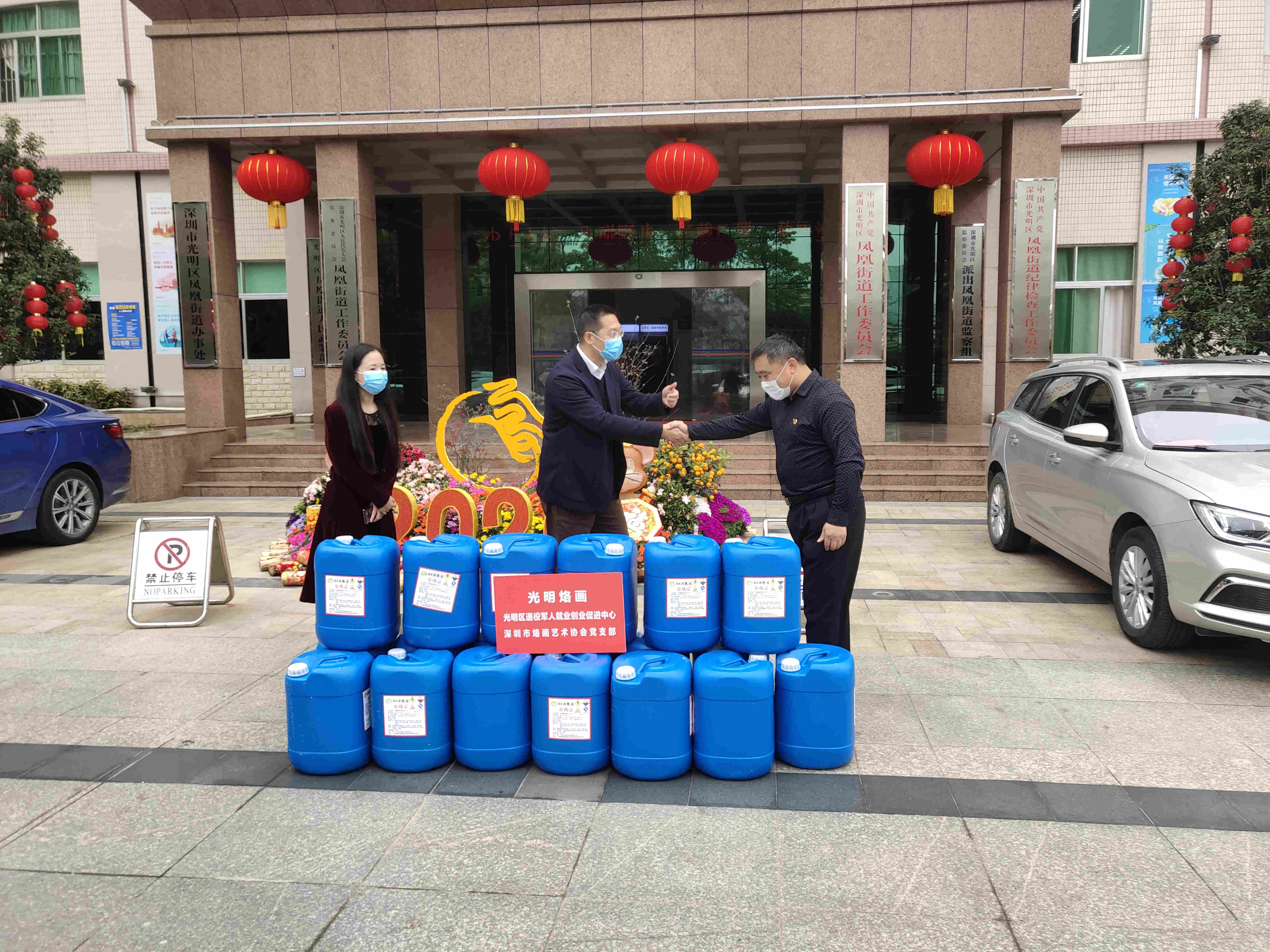 深圳市光明區政協委員、光明烙畫負責人、光明區退役軍人就業創業促進中心負責人、深圳市烙畫藝術協會黨支部書記張守福,以自己的綿薄之力,為疫情防控助力,在他的帶領下,烙畫協會黨支部的黨員們不但在街頭掛防疫情條幅、張帖疫情海報,還為抗疫前線“戰士”們捐款和物資。2月7日,他們先到光明區鳳凰街道南鳳派出所獻上5桶消毒液 ;光明區鳳凰街道辦事處送去19桶消毒液、100支消毒噴霧劑 ;給光明區公明街道辦事處10桶消毒液 。2月8日 ,又去光明區玉塘街道辦事處送上10桶消毒液; 光明區新湖街道辦事處10桶消毒液。 2月9日,在到光明區光明街道東周社區送去5桶消毒液;光明區馬田街道辦事處10桶消毒液。 2月12日, 到海軍某部送去10桶消毒液; 光明區醫學會20桶消毒液,光明區新聯會60支消毒噴霧劑。 2月13日,為退役軍人送上慰問品 ,並向光明區工商聯捐獻10000元、湖北慈善總會3000元、老鄉會1001元,還向光明區工商聯捐贈獎牌一批(用於疫情後工商聯回贈給捐款捐物單位或個人)。他們累計捐款1.4萬元和防控疫情物資價值逾11萬。