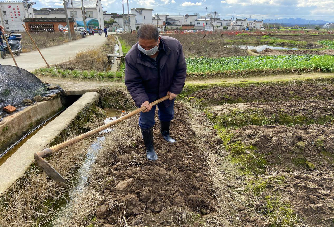 一年之計在於春,2月13日,雨後初霽,潛口鎮澄塘村田野家庭農場一派搶抓農時的繁忙景象,鎮村幹部和農場負責人正提醒下地耕種的村民們做好防護、分散作業、科學耕種。