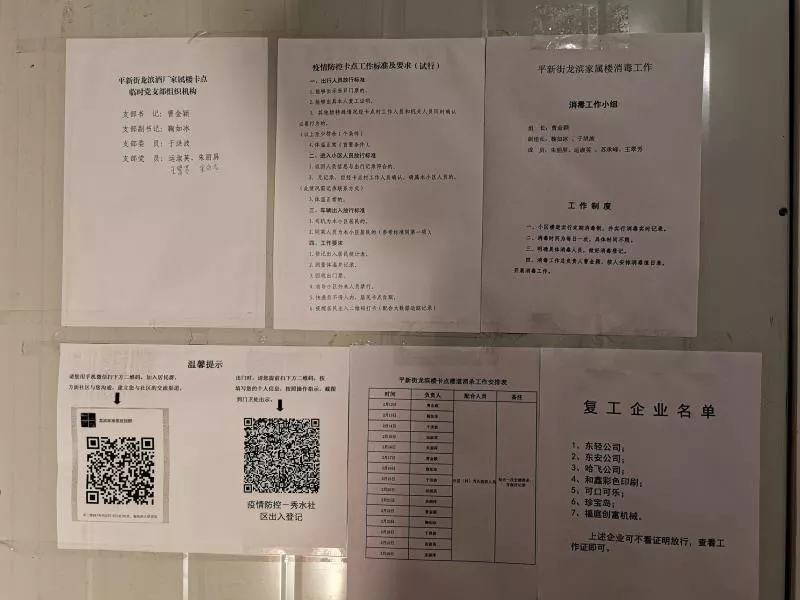 【香港商報網訊】哈爾濱新區平房片區平新街道龍濱家屬樓是獨棟樓,共5個單元126戶,居住人員主要為老年人和打工租戶,處於無物業管理狀態。平新街道辦事處在龍濱家屬樓實行封閉管理,設置出入卡點,並成立臨時黨支部。按照區應對疫情防控指揮部工作要求,結合自身實際情況,動態調整工作方式,通過「1次身份轉變」「2個追蹤排查」「2套表格登記」「2個二維碼優化服務」「4個制度上牆」的「12224」工作法,確保防疫工作嚴、細、實。