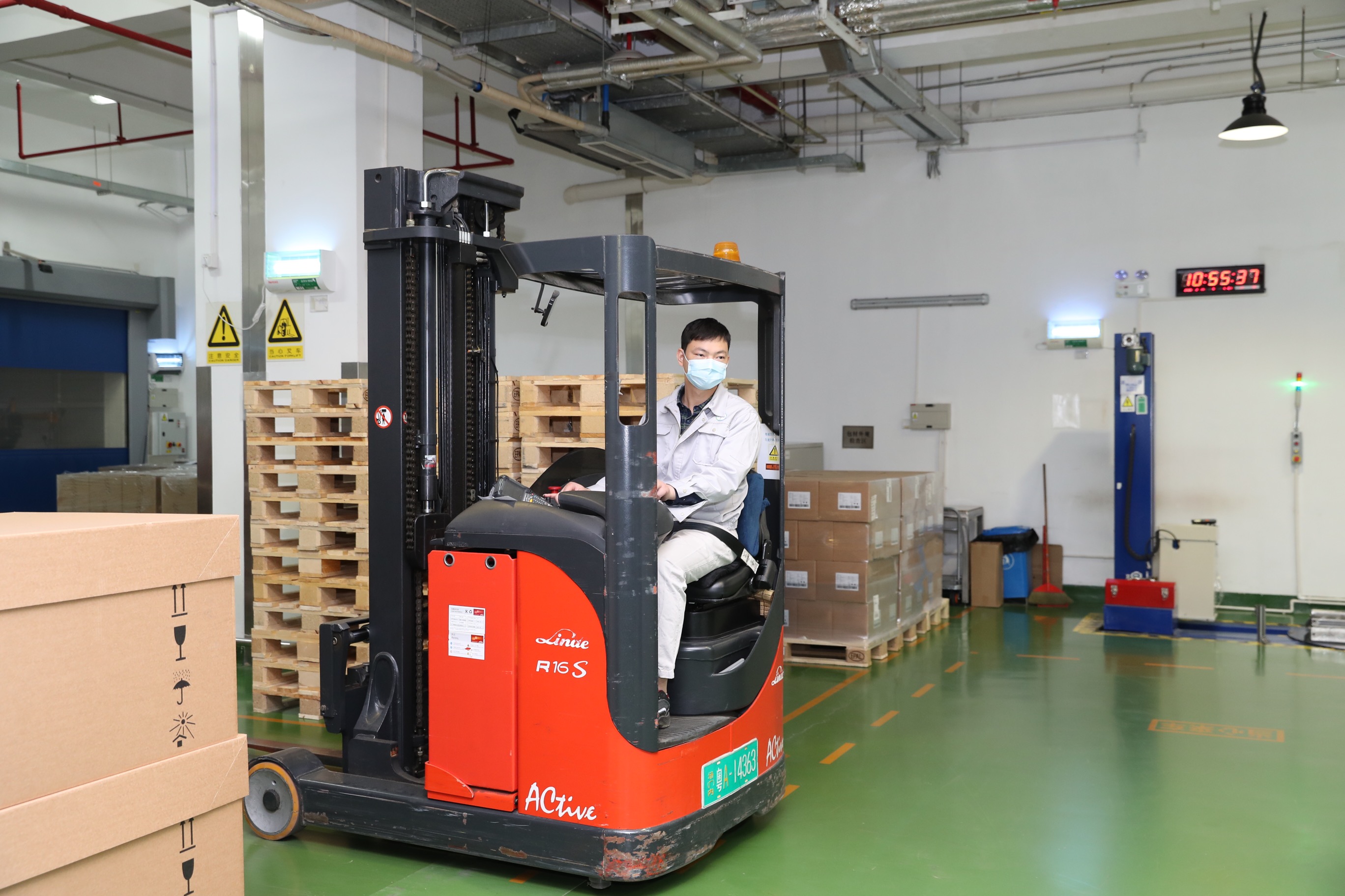 寶潔黃埔工廠所在的西區,是廣州開發區最早的起步區,聚集了寶潔、拜耳等世界500強企業。在距離寶潔黃埔工廠5分鐘車程的拜耳處方葯廣州產品供應中心(以下簡稱拜耳廣州供應中心),廠區倉庫內整齊堆放着10米多高的貨箱,工作人員正在用叉車搬運藥品。