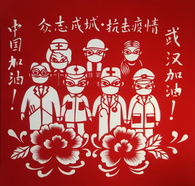 李明霞剪紙作品《眾志成城抗擊疫情》