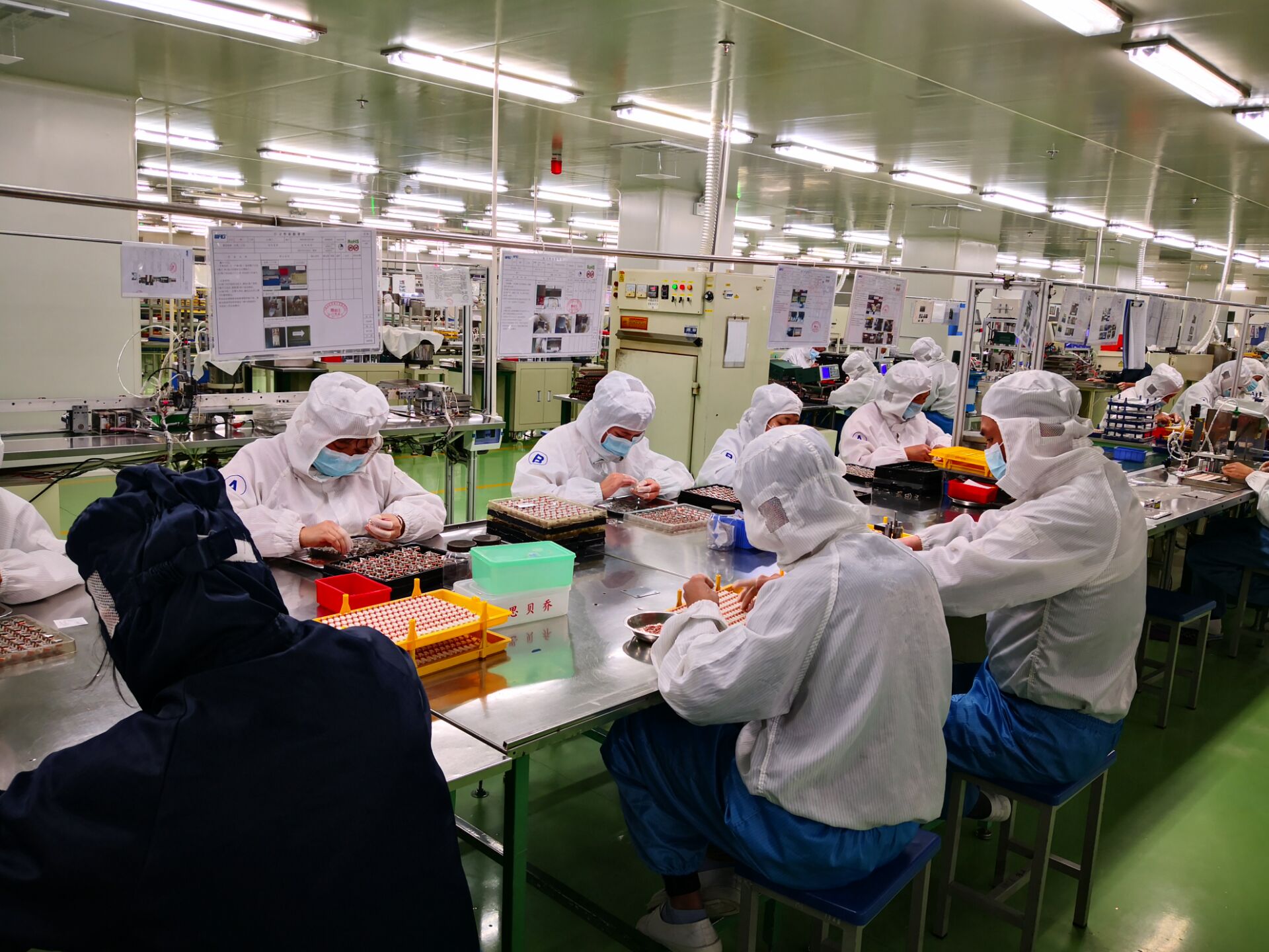 該公司是黟縣西遞鎮2010年引進的重點工業项目,原定農曆正月初七復工。“為了復工,我們籌集了一次性口罩1萬個,將按照每個員工每天2個標準發放使用;準備了消毒液300kg,每天早晚在宿舍樓、食堂、辦公樓、公共區域、車間等公共場所各消毒一次。”馮經理介紹說,因為他們公司是從事高端精密電子元器件生產,生產線上的員工日常工作都需要消毒,穿戴隔離帽和口罩,所以對於生產線上的員工來說,工作環境沒有太大區別,員工們的工作狀態也都很好。