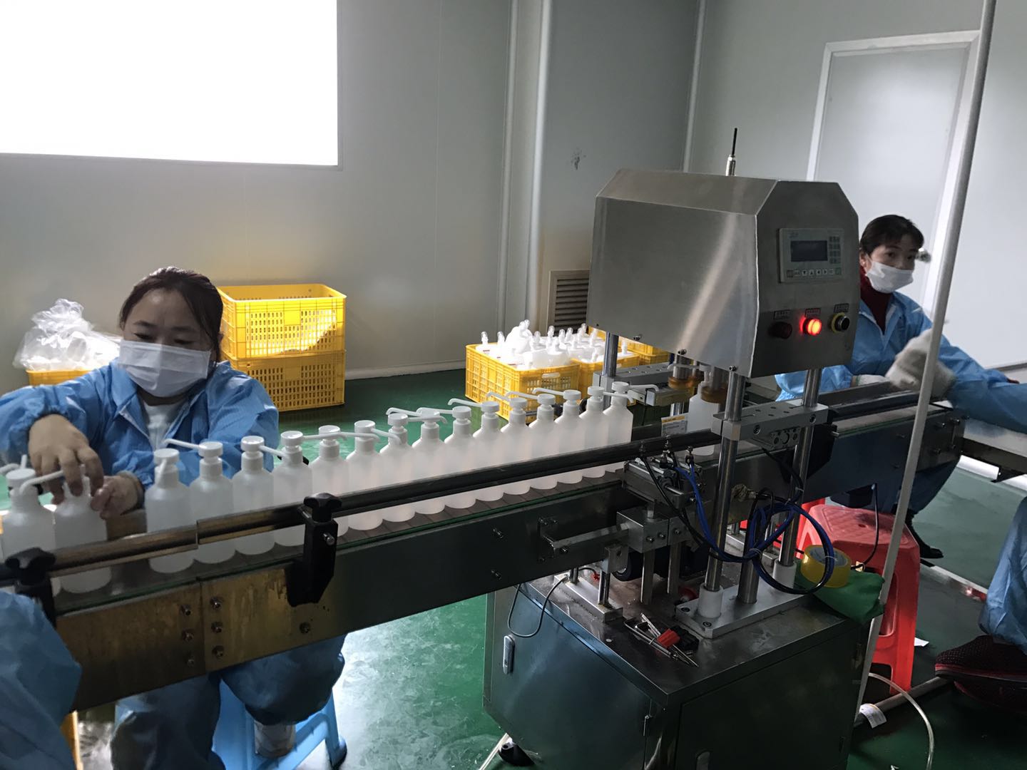 【香港商報網訊】記者 何雯 報導:幾十名工人佩戴口罩加緊生產,一瓶瓶消毒劑正在配置、灌裝、包裝……連日來,位於湖南省郴州市汝城經濟開發區內的湖南和思生物科技有限公司生產車間內,生產線滿負荷運轉,為堅決打贏疫情防控阻擊戰提供物質保障。