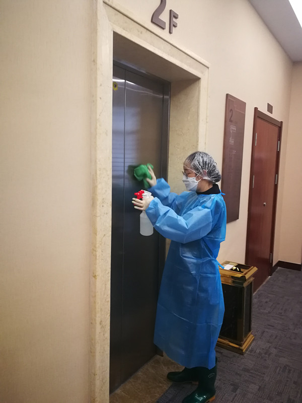 客房部經理方晶第一個請願,主動擔負起了隔離客房的清掃消毒工作。“我們以前都沒有參與過這種服務,我想從自己先開始,把一套流程理順,然後再把服務經驗傳遞給下一個來接班的同事,這樣可以把工作做得更好”。