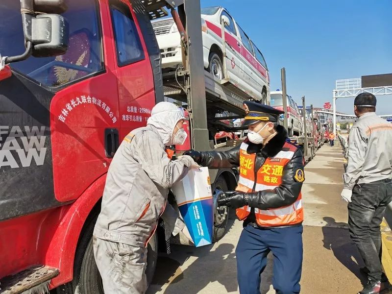 運輸車隊立刻主動聯繫當地政府及交警部門。天津交警了解到情況後,迅速派出警力,開放高速公路,並全程護送這批滿載抗疫前線急需物資的車隊快速安全地前進,之後河北交警接力護送。車隊抵達河南省際交界處時,讓車隊司機感動萬分的是,河南的交警已在等候他們,為車隊司機送上熱水、麵包,並立刻同樣一路為運輸車隊進行全程護送引導。車隊司機張春田師傅感動地說,大疫面前真情無阻,出發時對疫情的擔心,被這一路的支援所感動,讓我們全身充滿了溫暖和力量。