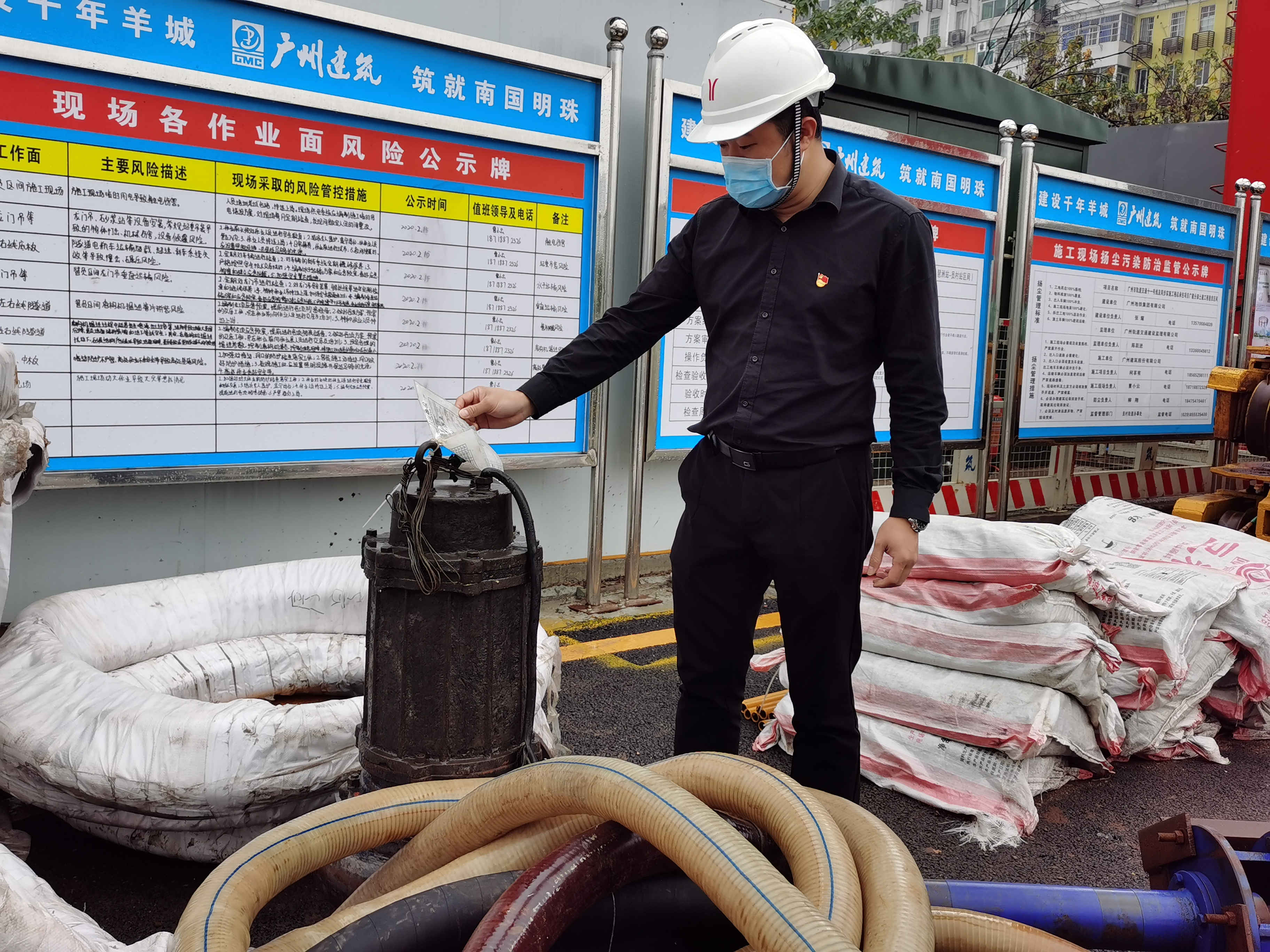 共產黨員、工程師張耀在檢查施工排水設備的維保情況