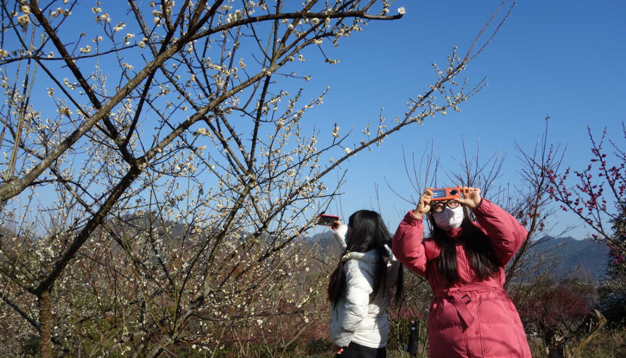 【香港商報網訊】安徽黃山市黃山梅園坐落在530國道的黃山區焦村鎮山河村,有紅梅、墨梅、白梅、臘梅、綠梅等1000餘株,占地百餘畝,各色品種的梅花在雪後初晴的藍天掩映之下競相綻放,本就惹眼的花瓣顯得更加絢麗無比。微風拂過,一個個玲瓏小巧的花苞,傲立枝頭,寒風中搖曳生姿,不時飄來淡淡清香,沁人心脾,展示了濃濃的初春氣息,成為黃山腳下一道靚麗風景。(吴敏 王士哲 崔豔)