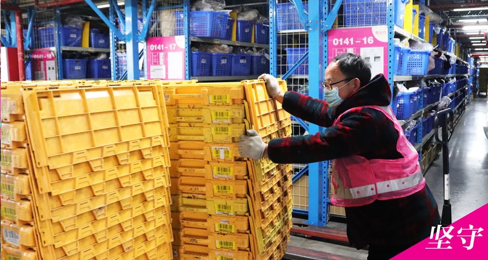 在荔灣區的唯品會,春節以來一線員工堅持嚴格保障場地、人員、貨品的安全衛生