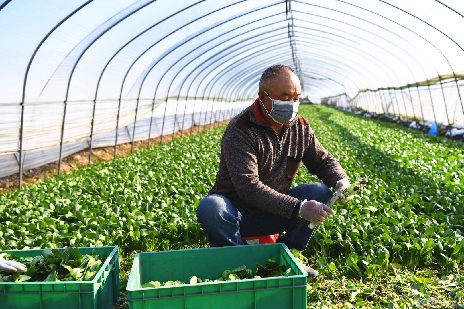「當前新冠肺炎疫情形勢嚴峻,我承包的300多個棚,每個棚近4000多斤蔬菜的銷售就成了大問題,大圩鎮政府搞的農超對接真是解決了我們的燃眉之急。對接超市後,現在我承包的大棚每天就可以向市區供應近10噸的蔬菜。」農戶徐景安感慨道。