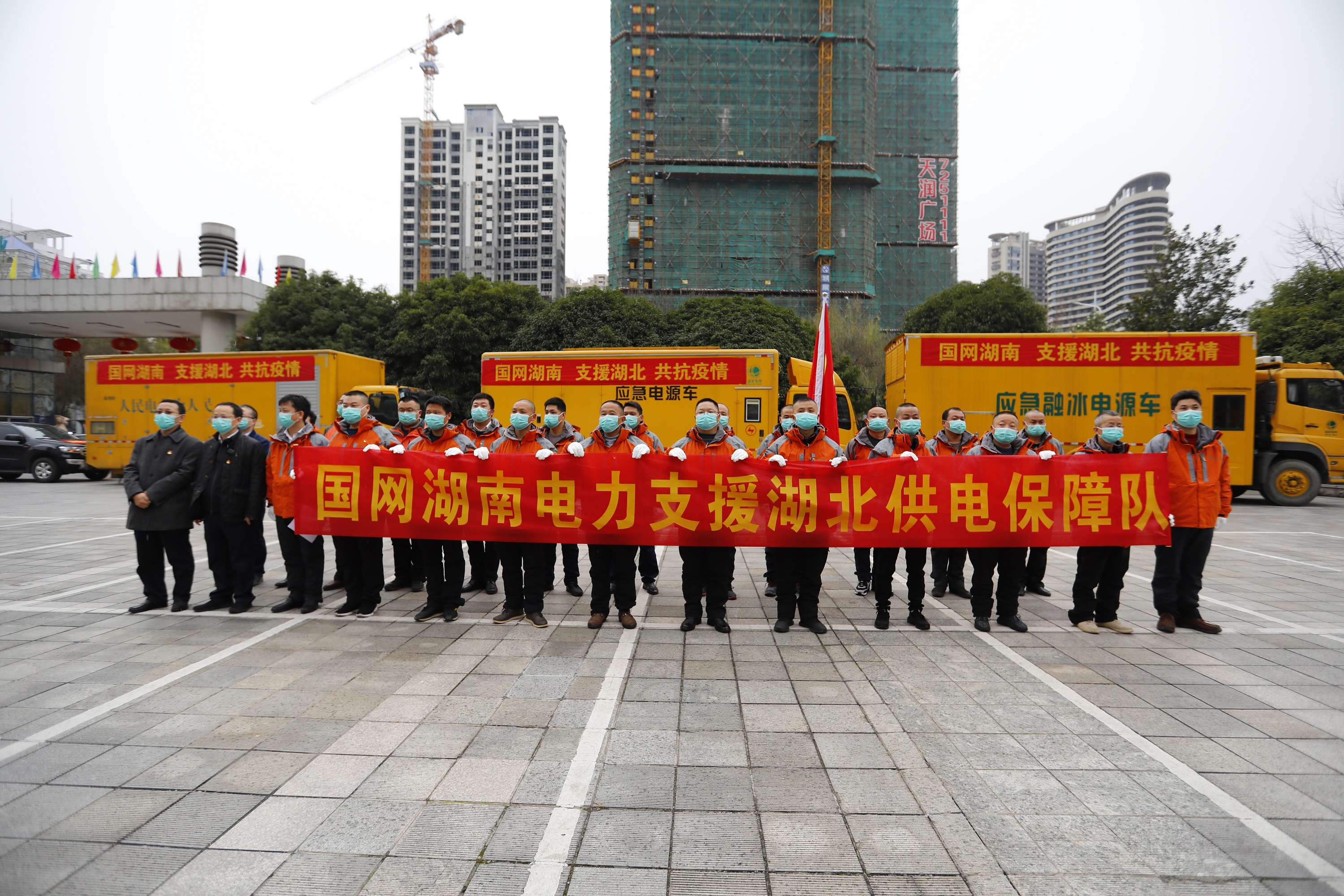 【香港商報網訊】“國網湖南電力支援湖北供電保障隊集結完畢!”2月19日上午,國網湖南省電力有限公司支援湖北抗擊疫情保供電保障隊隊長雷紅才帶領首批21名供電保障隊員在常德集結,出征湖北。