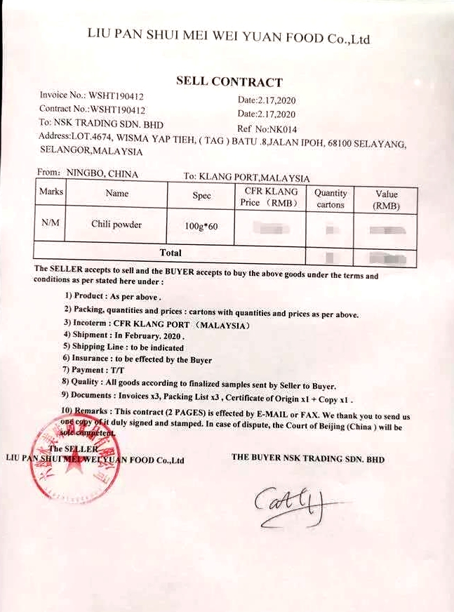 馬來西亞發來的訂單