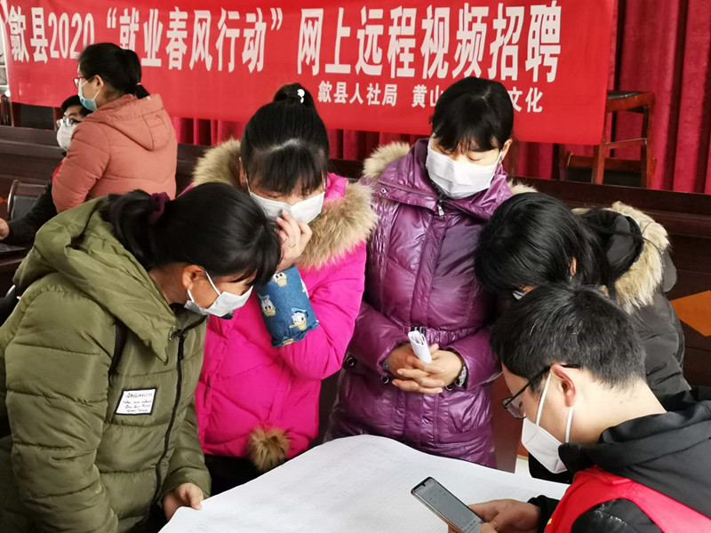 新冠肺炎疫情防控期間,歙縣人力和社會資源保障部門暫停了原定正月初一以後進行的28場線下招聘計畫,全部改為網路招聘。1月25日以來,當地147家企業通過就業人才網等發佈招聘信息,求職者可以線上投遞簡歷,並進行互動求職。