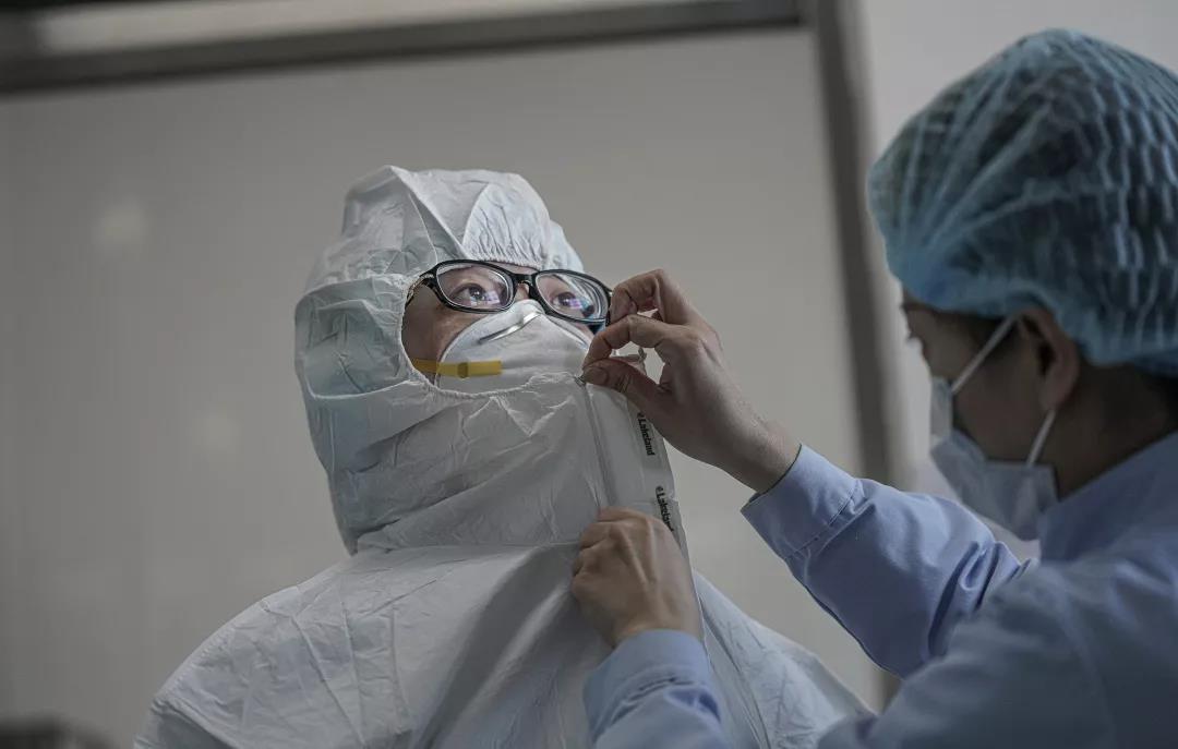 工作了一個多小時之後,護目鏡開始「起霧」,這會極大地影響楊佳慧的工作效率。一套防護服的有效防護時間是4-6個小時,她必須在這段時間內,完成所有的工作。