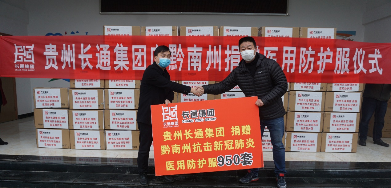 【香港商報網訊】20日,貴州民營百強企業長通集團將950套醫用防護服捐贈給貴州省黔南苗族布依族自治州政府。