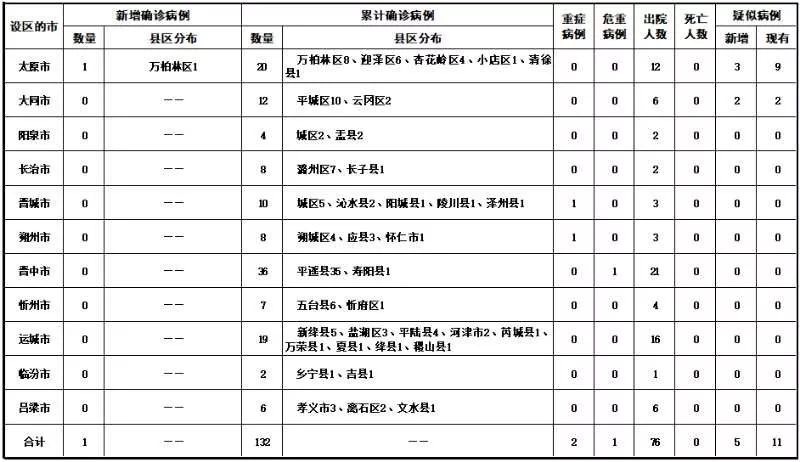 現有在院隔離治療56例,其中重症2例,危重症1例。新增疑似病例5例,現有疑似病例11例。目前累計追蹤到密切接觸者4048人,當日解除醫學觀察30人,共有314人正在接受醫學觀察。