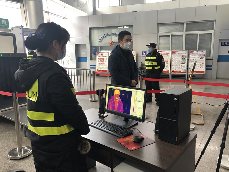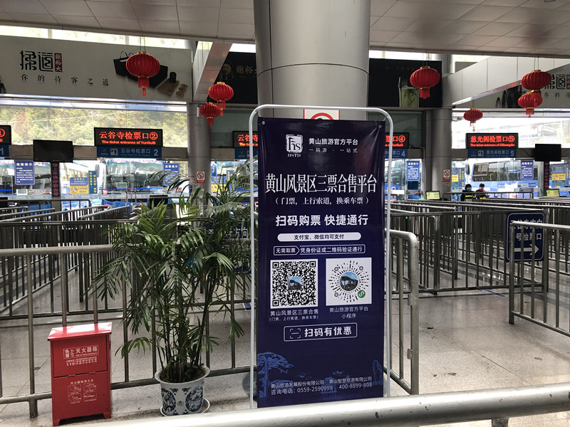 2月20日上午9點,記者在黃山風景區南大門新國線集散中心換乘點看到,目前,這裏已經安裝了紅外人體表面溫度快速篩查儀,乘客進入場站前,須佩戴口罩、出示健康碼,通過測溫和安檢後憑支付憑證即可候車。