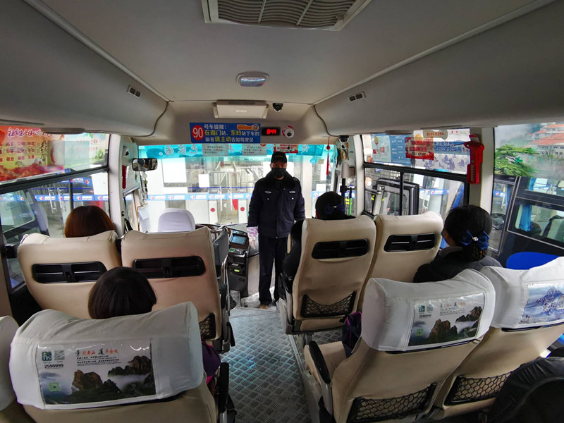 據黃山風景區南大門新國線運輸公司負責人孫健介紹,目前景區運營車輛採取每車次對全車消毒一次的方式,即所有運營車輛每運營一趟後都需進行一次消毒,確保遊客有一個安全健康的乘車環境。