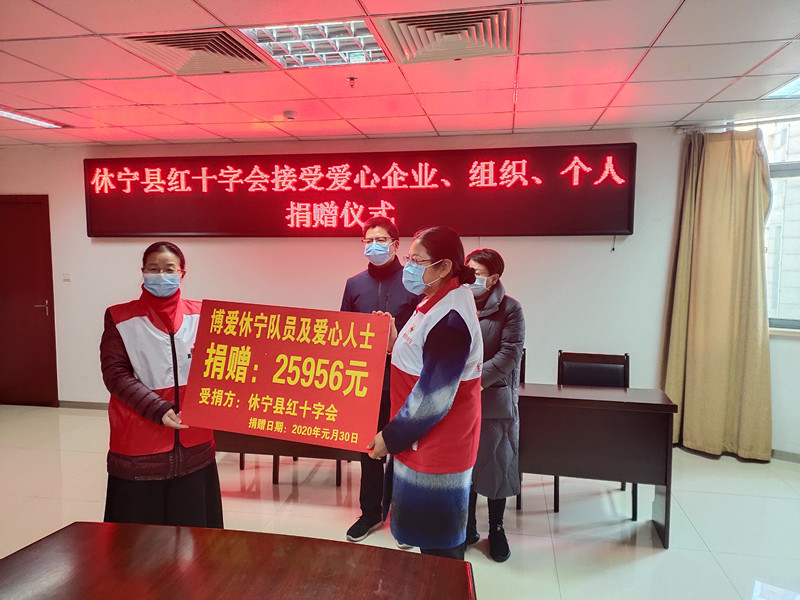 1月27日至2月19日,“博愛休寧”志願團隊共協助休寧紅十字會接待近600批愛心捐贈人員,登記捐款354多萬元、捐贈物資近200萬,有力支援了前線抗疫工作。