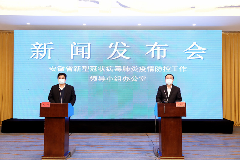 安徽省交通控股集團疫情防控和復工複產情況新聞發佈會現場,安徽省委宣傳部新聞發佈處處長武瀟(左)主持發佈會,安徽省交通控股集團總經理錢東升介紹相關情況 (劉煒鑫/攝)
