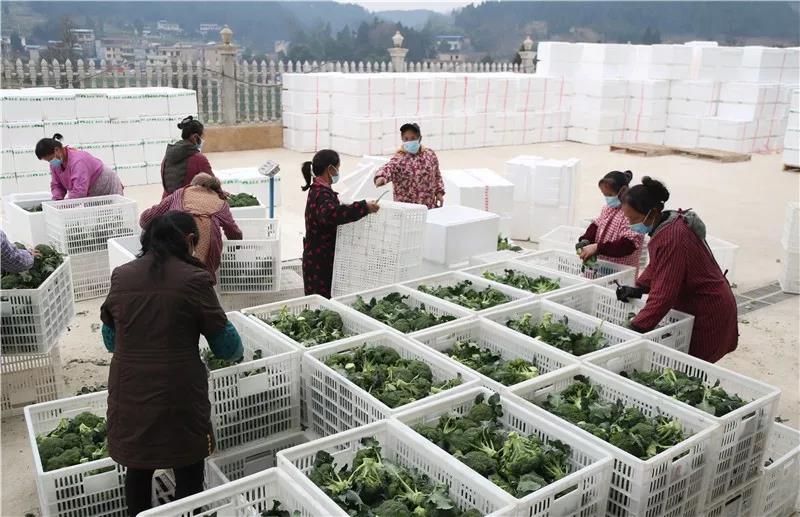 【香港商報網訊】雨水時節,走進貴州省玉屏侗族自治縣新店鎮冷鏈物流中心,數十名群眾戴着口罩,正忙着分揀、裝箱、稱重、打包西蘭花,幹得熱火朝天。距離物流中心不遠處的基地上,數十名群眾正在田間地頭採摘西蘭花。