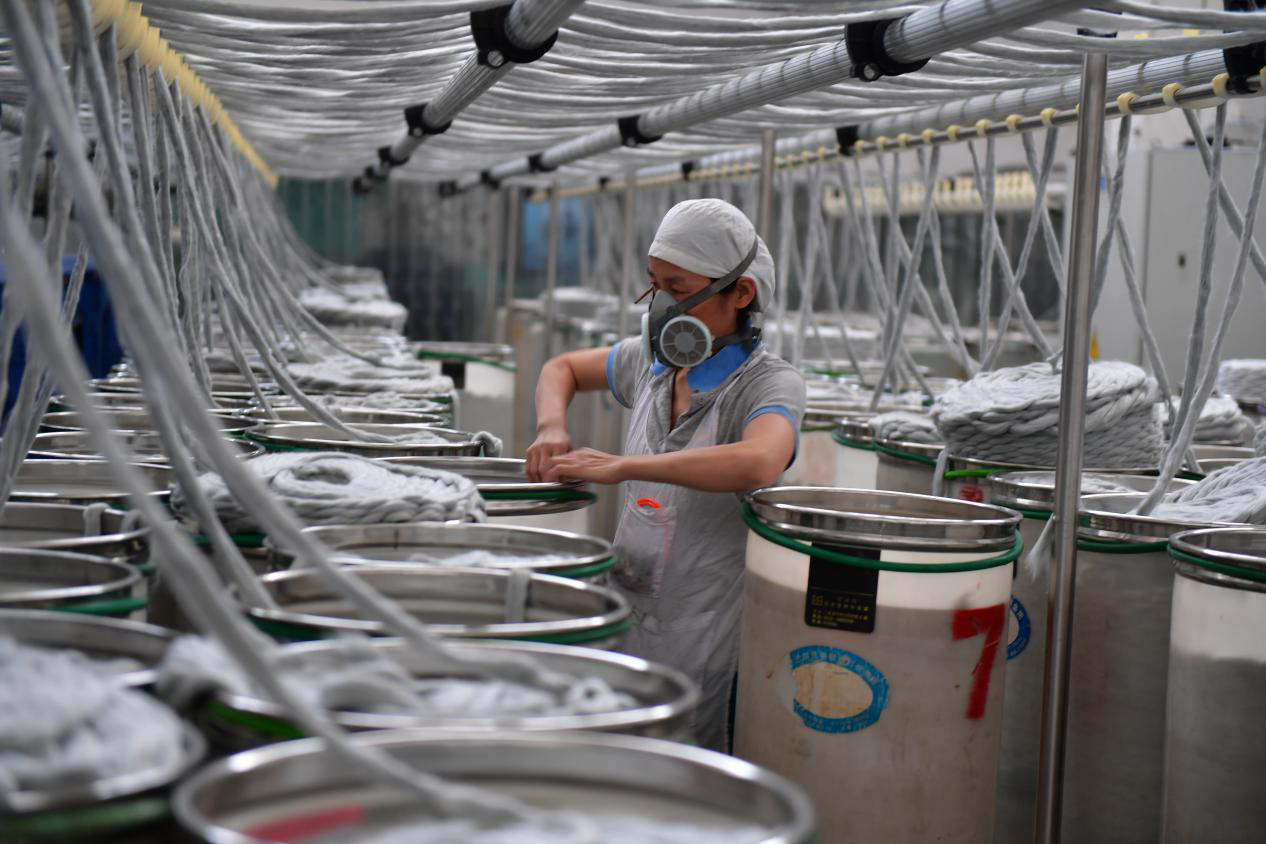 2月22日上午,安徽巢湖雅戈爾色紡科技有限公司生產車間一角
