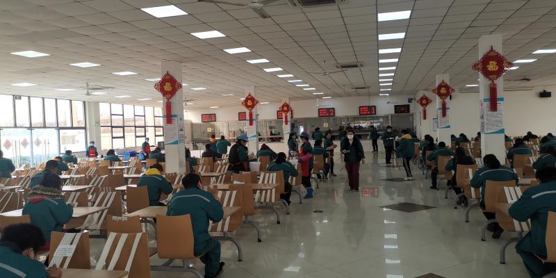 在現場查看就餐情況的錦繡所所長雷蒙說,「我們要求企業安排員工分批錯時就餐,提倡有條件的企業分散就餐。對在食堂內就餐的員工,實行『高考式』管理,防止人員集聚,最大程度減少疫情傳播風險。」