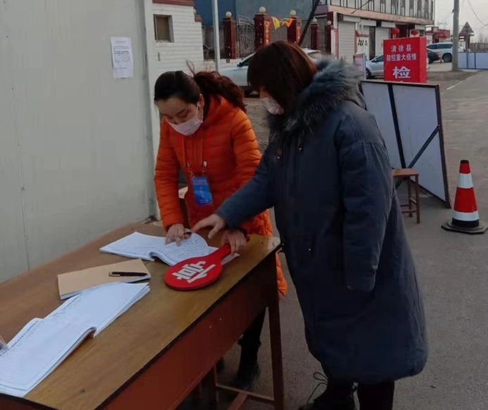 一早上不間斷的車流量,不停歇的腳步,測量體溫、人員信息登記、車輛信息拍照、消毒消殺每個步驟都要嚴格落實到位。“師傅你排好隊,馬上就到您了”“小張,你要再仔細些,所有信息一項也不能漏登”“那位師傅,您的證件落下了”“車太多了,再拿出一本登記冊,我來記”。連續5個小時高強度的工作後,她們已經累得精疲力盡,腿站的僵硬,臉凍的通紅,有些女同志還因為氣溫突變把腳給凍了。但她們始終堅定的表示,能夠在疫情防控的戰鬥中默默奉獻一份力量,多辛苦都值。