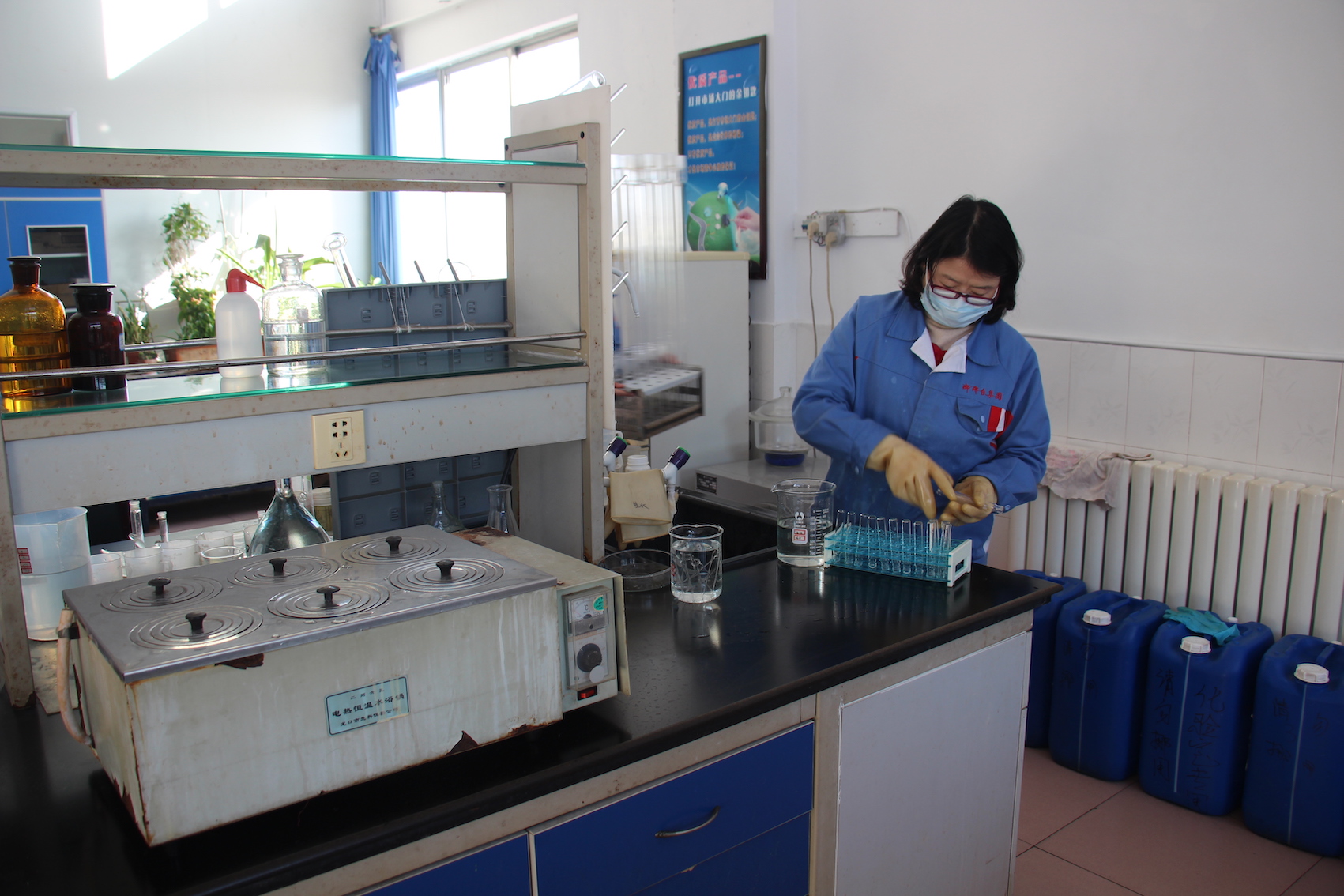 工作人員在衣康酸生產化驗室進行產品檢測