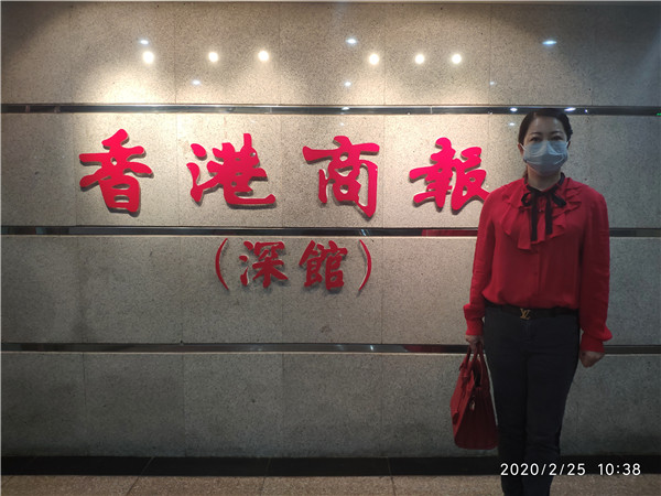 【香港商報網訊】記者 蘇偉 報導:2月25日,深圳市方柏環境保護科技有限公司董事長曹然親自駕車到深圳報業集團,把一批消毒水送給香港商報員工手上,為媒體人送來了安全保障。