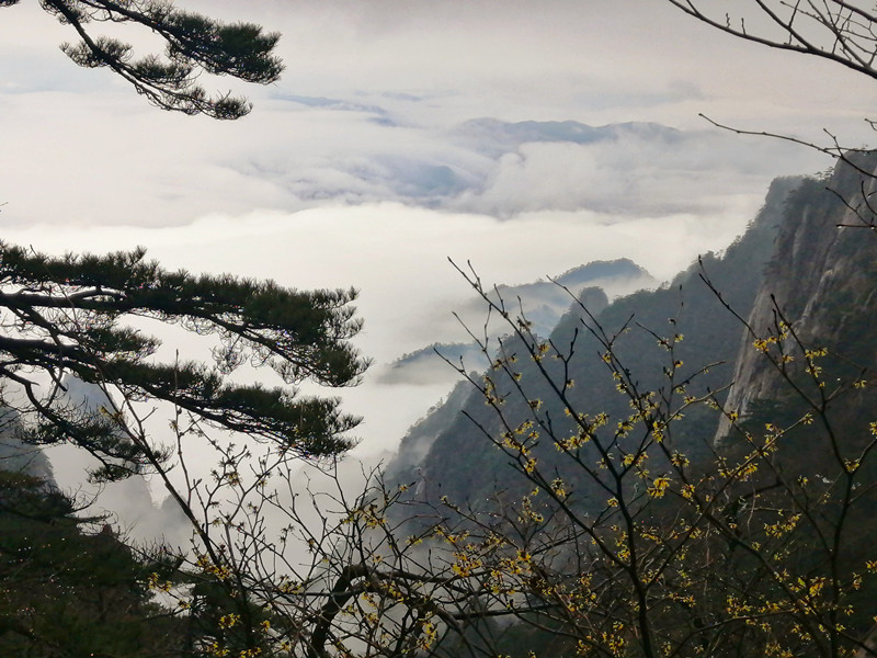 與此同時,那生長在山巔上金黃色的金縷梅,也在春風露出了美麗的笑靨,與奇松怪石構畫成一幅鳥語花香的美好圖景。