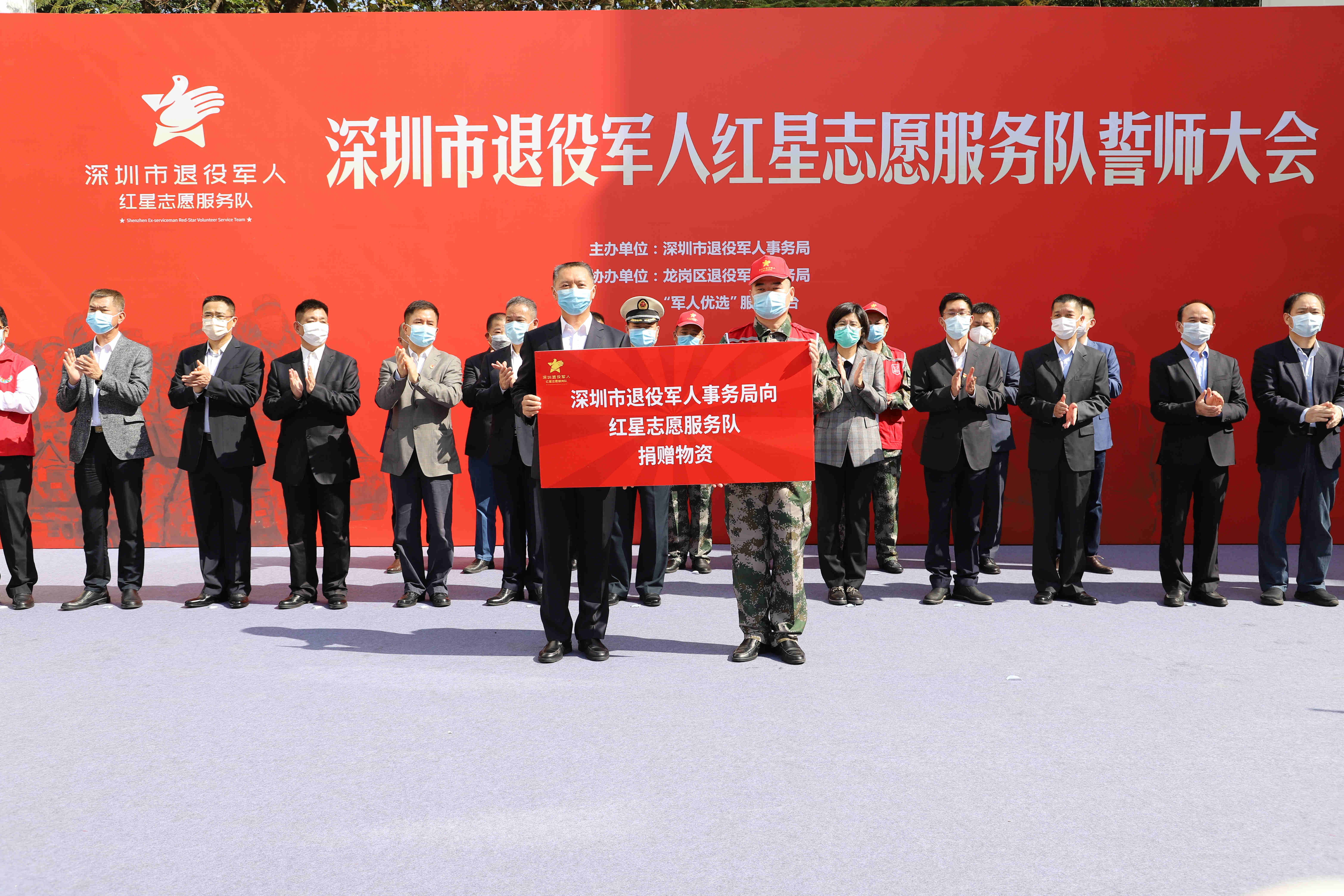 深圳市退役軍人事務局局長張悅華向紅星志願服務隊捐贈物資