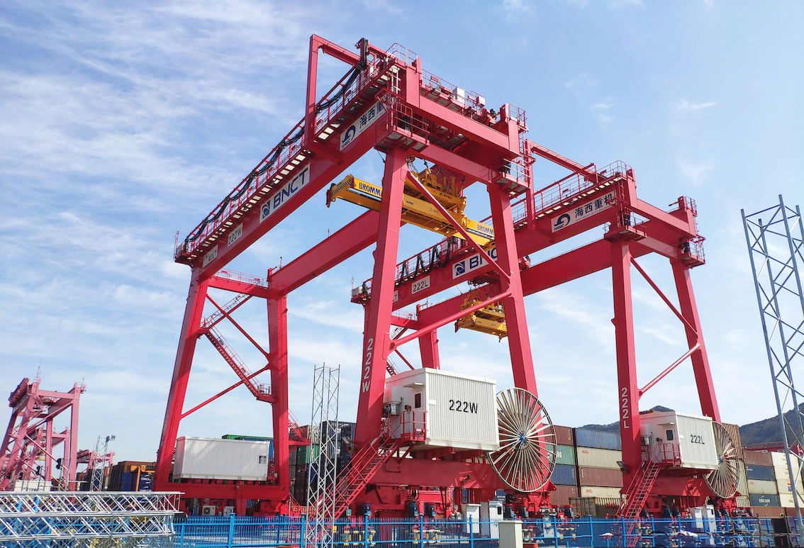海西重機自動化軌道吊在韓國釜山新港集裝箱碼頭順利交付 馬著凱攝