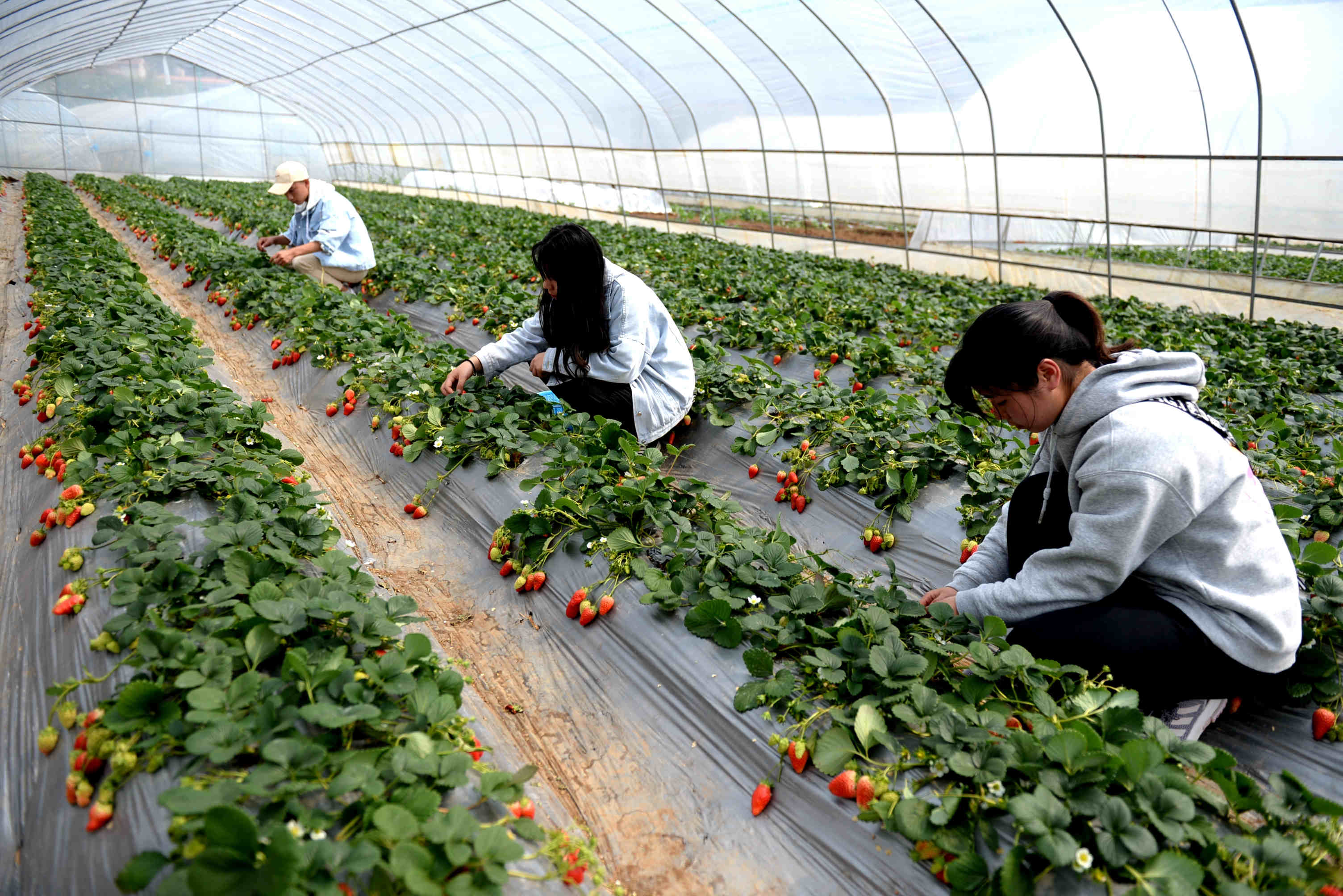 市民遊客在大河鎮大橋村美佳草莓種植基地採摘草莓