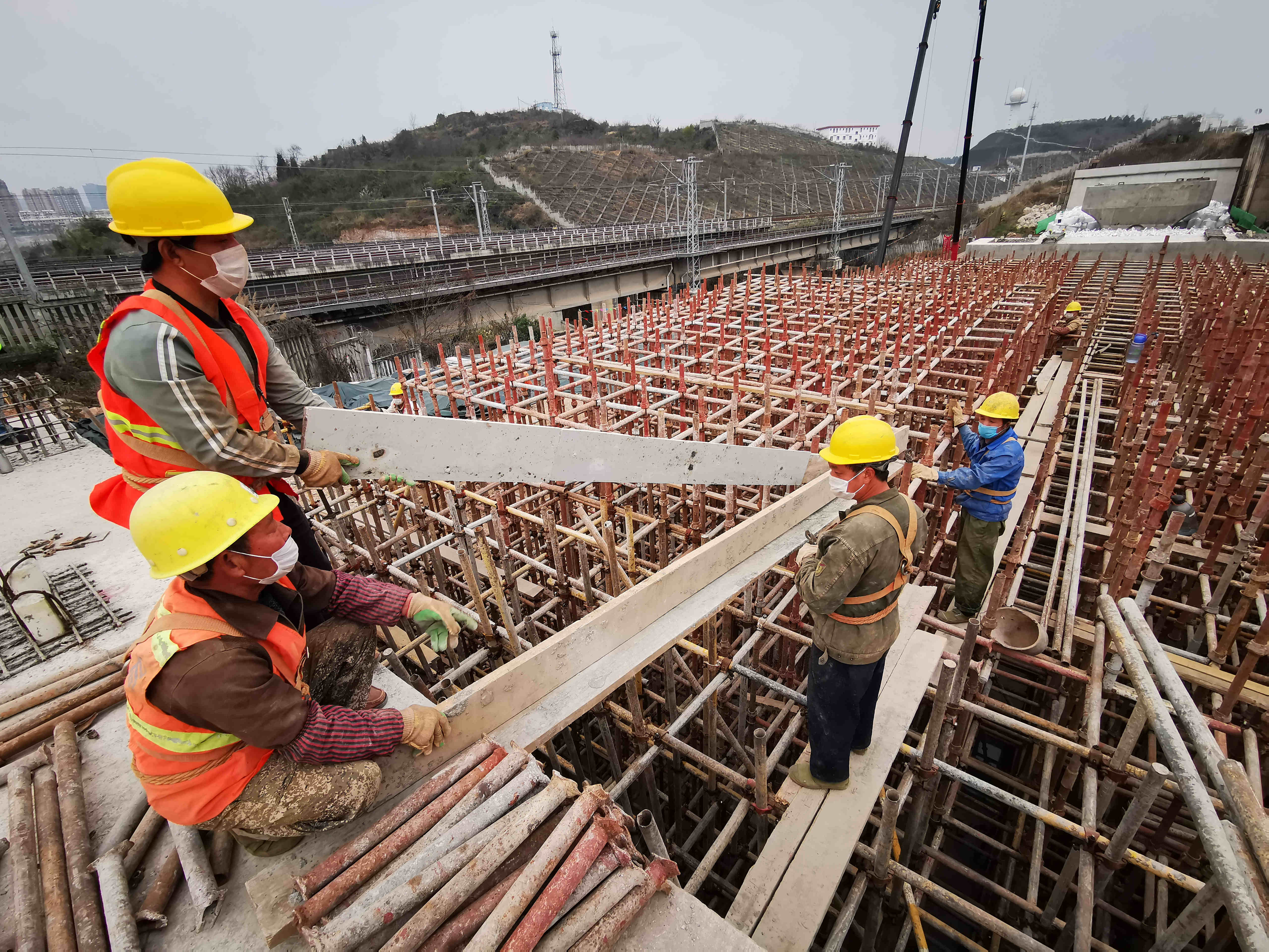 項目部員工在工地施工中