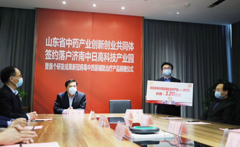在疫情出現後,山東省科技廳成立了應對新型冠狀病毒感染肺炎疫情應急防控科技支持小組,山東省中藥產業創新創業共同體迅速組織各成員單位,充分發揮各自優勢,成立新型冠狀病毒中西醫輔助治療系列產品聯合攻關小組進行技術攻關,目前所研發的新冠病毒中西醫輔助治療產品「金得固」已經投入生產,預計3月初可投放市場。首批生產出來的價值120萬元產品,將無償捐助給濟南市新冠病毒定點醫院、一線高暴露人員、易感人群等群體,助力山東省疫情防控體系升級。