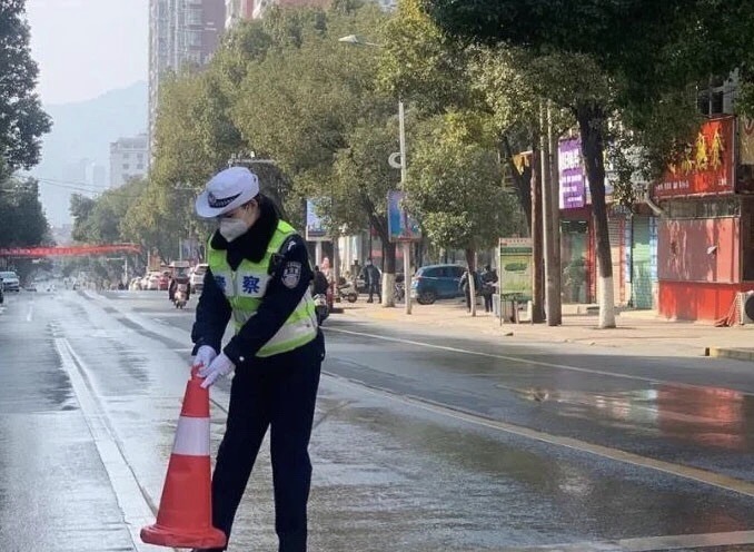 丈夫張錚,入警5年,在西峽縣公安局交警大隊城區中隊蓮花崗亭執勤;妻子李柳,入警1年半,在西峽縣公安局交警大隊車管所受理崗工作。隨着疫情防控工作的調整,李柳也被抽調,到街面執勤。2月2日是兩人結婚三周年紀念日,在一線執勤的張錚站在卡口,冷風習習,心裏想着妻子和自己共同慶祝的畫面,卻依然堅守崗位。