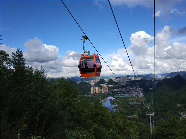 據了解,梅花山索道位於六盤水梅花山旅遊景區9.91公里長的索道划過天空,起終點垂直高差620米,是目前世界上最長同路徑山地索道。不僅是長度刺激、高度刺激,還有沿途的風景一樣刺激着你的視覺神經,讓你忘卻所有煩惱和壓力。