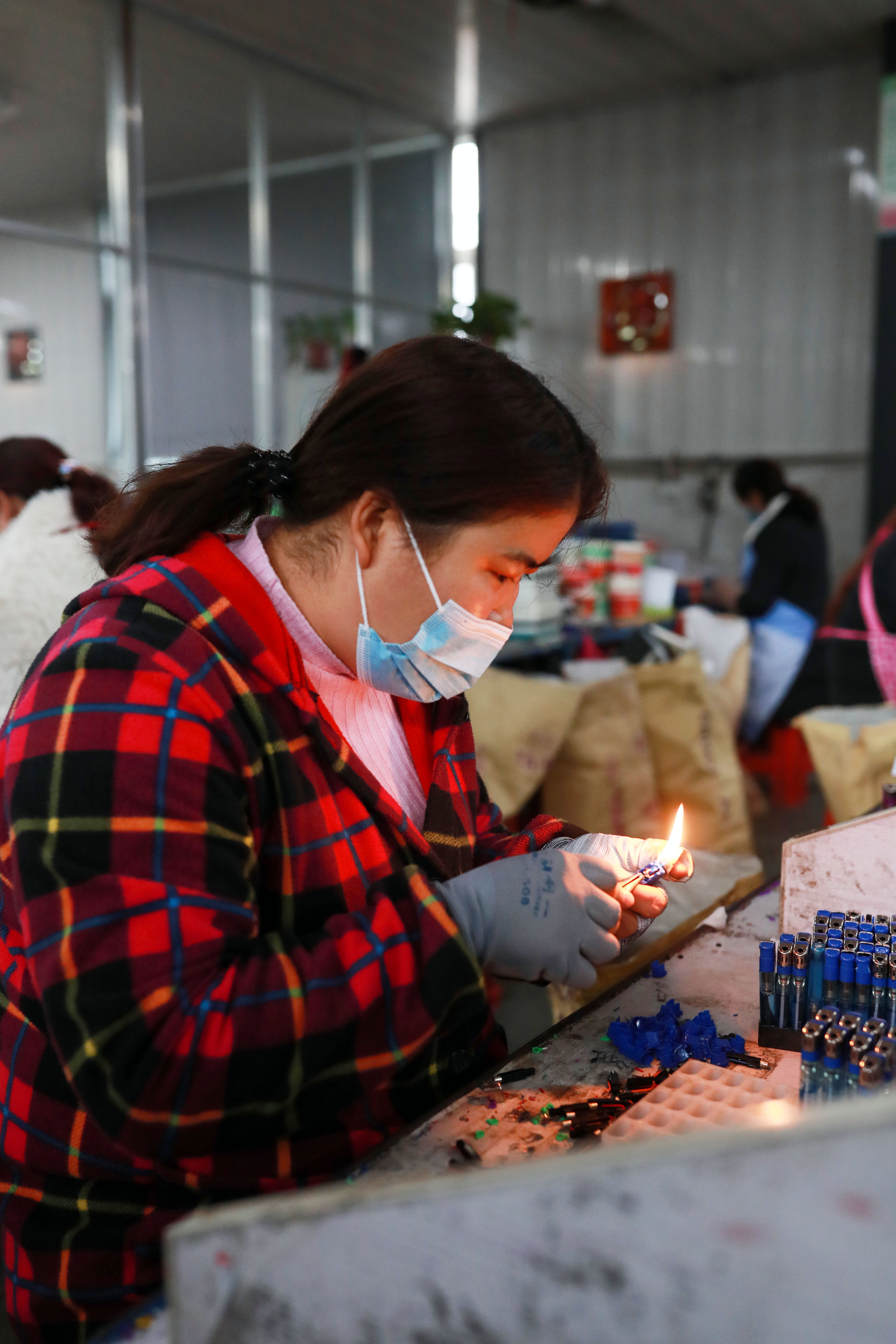 【香港商報網訊】3月3日,在貴州省銅仁市大龍經濟開發區一家扶貧工廠對外出口的打火機生產企業,工人在生產線上忙碌。