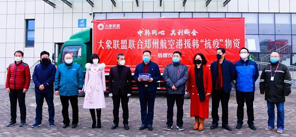 在儀式上,愛心企業大象聯盟向河南省慈善總會捐贈總價值49. 5萬元的口罩、防護服等醫療用品,定向用於韓國大邱市的3家集中接收新冠肺炎患者的醫院:韓國大邱天主教大學醫院、嶺南大學醫院和大邱醫療院。
