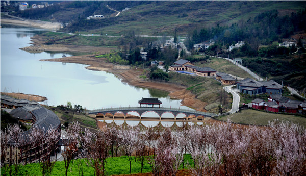 據介紹,這裡種植的500畝全部是紅葉李,春季白花勝雪,夏季葉紅似火,秋天顆顆果實點綴其間,和附近的國學館、大河堡、恩華溫泉等,構成了大河鎮美麗鄉村的七彩畫卷。(黃慶松)
