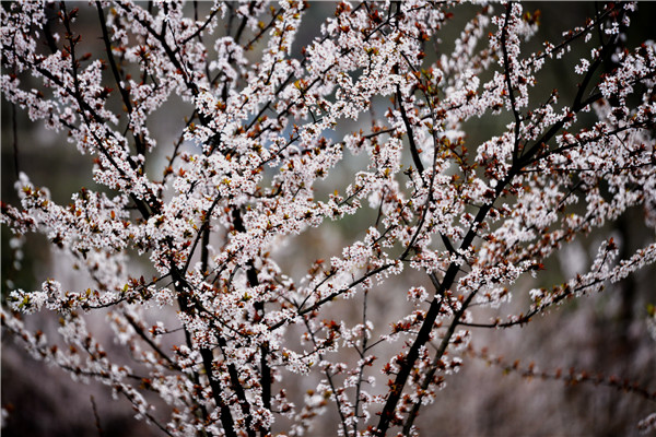 「最近一周來,大河堡紅葉李紛紛開花,花兒或潔白如雪,或粉淡如霞,嬌媚朦朧、如雲似雪,形成令人心醉的別緻美景。行走或健身在紅葉李樹下,在如雪白花的映襯下,構成了一道春意盎然的美麗風景線,太美啦。」市民陳女士說。