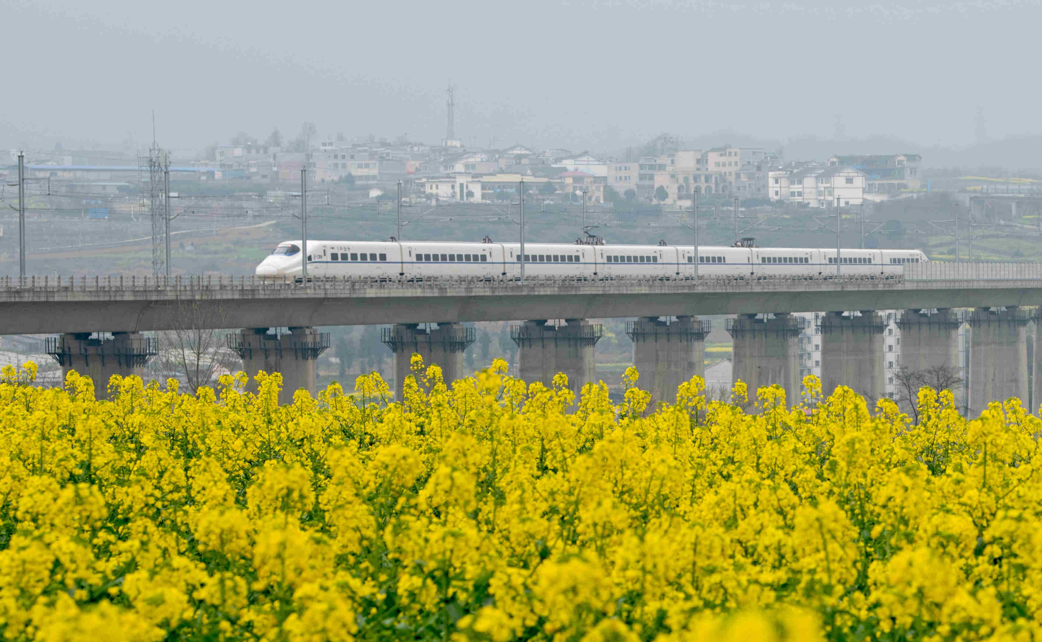 【香港商報網訊】「汽笛一響,黃金萬兩。」自成貴高鐵開通以來,3月5日,一列動車組行駛在貴州黔西縣段油菜花中美不勝收。貴州黔西作為「貴陽後花園」和「畢節東大門」的區域優勢將更加凸顯,也為旅遊業迎來更多機遇。