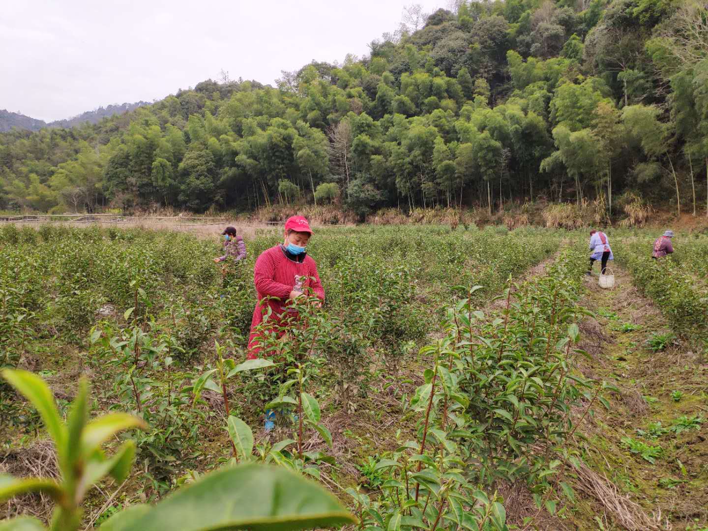 3月6日,在祁門縣蘆溪鄉蘆溪村祁雲家庭農場茶葉有機肥替代化肥示範基地,茶農正在採摘開園早茶