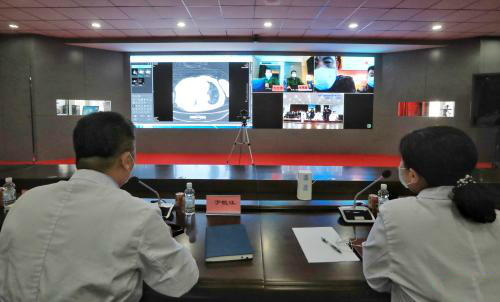 【香港商報網訊】音視頻及圖片、文檔實時傳輸,一塊屏幕,同時展示哈爾濱、武漢、孝感、孝感市漢川、孝感市應城五個現場。12日14時,經黑龍江省援鄂指揮部前方指揮部協調,黑龍江省新冠肺炎省級危重症集中救治中心專家團隊、支援武漢醫療隊專家團隊對黑龍江省支援孝感市醫療隊漢川、應城兩個分隊的三個病例進行遠程會診。