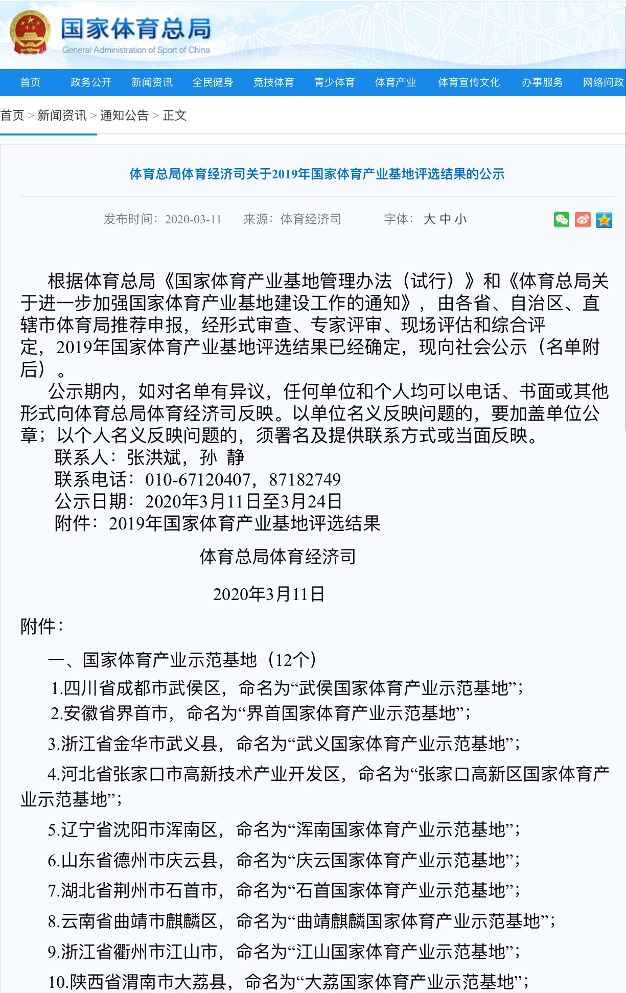 【香港商報網訊】記者從瀋陽渾南區相關部門獲悉,3月12日,國家體育總局發佈《體育總局體育經濟司關於2019年國家體育產業基地評選結果的公示》,瀋陽渾南區獲評國家體育產業示範基地。
