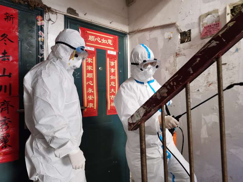 「三劍客」每天都像戰場上的「急行軍」,一大早就要去給全封閉隔離的樓棟進行消毒,一旦接到密接人員信息,就要立即趕往居民家中,將其送往集中隔離點。上下樓、發動車輛,下車、奔跑,繁忙的工作讓「三劍客」的衣服經常被汗水浸濕,貼在身上,在密閉的防護服里悶熱難耐,下車後風一吹,又冷得發抖。